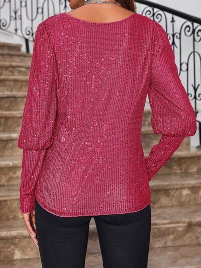 Sequin Boat Neck Long Sleeve Top
