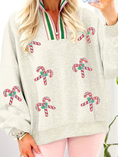 Sequin Candy Canes Contrast Collar Patchwork Loose Sweatshirt