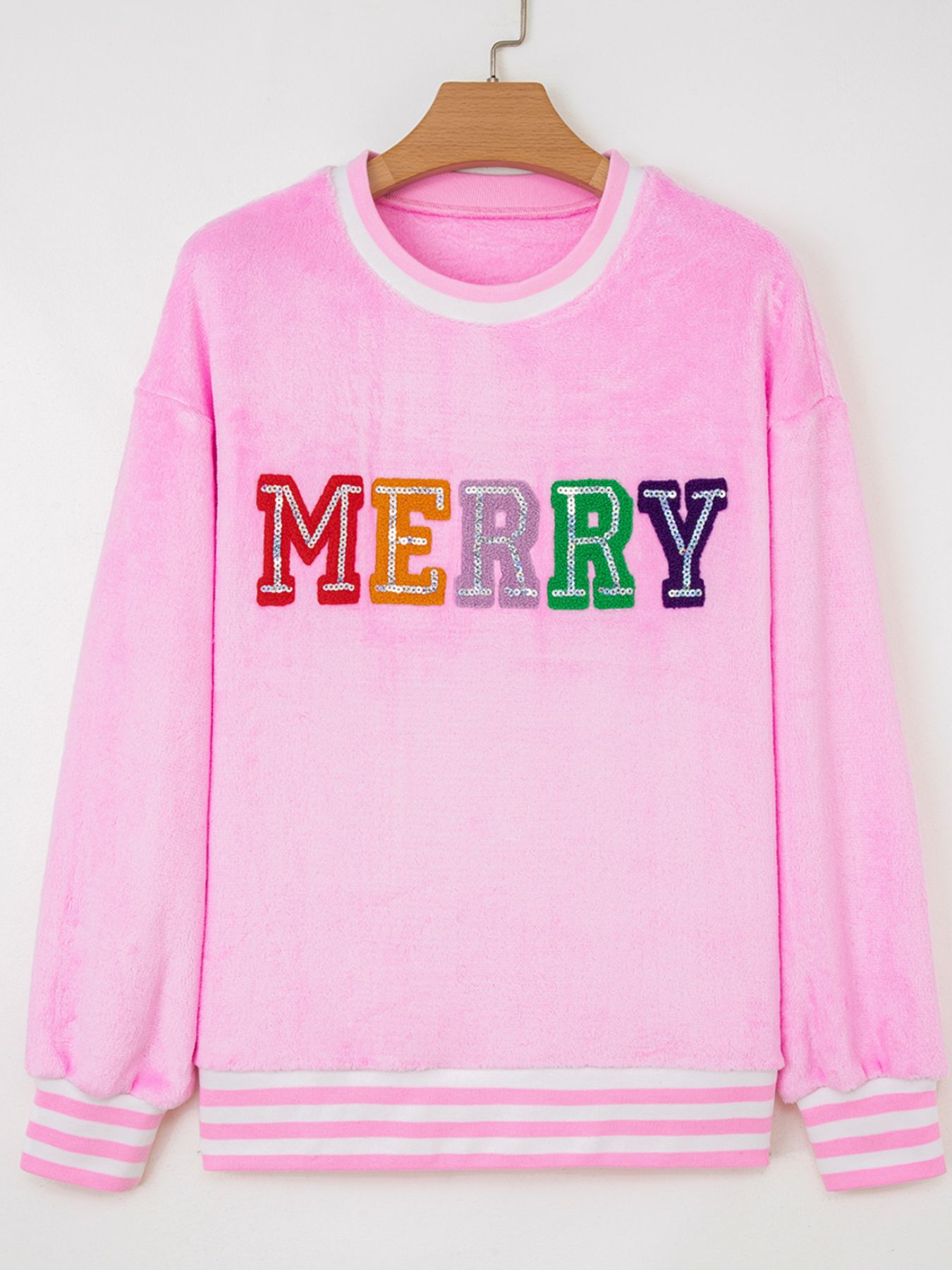 Sequin Chenille MERRY Graphic Plush Sweatshirt