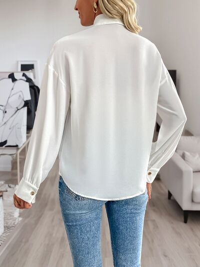 Sequin Contrast Collared Neck Long Sleeve Shirt