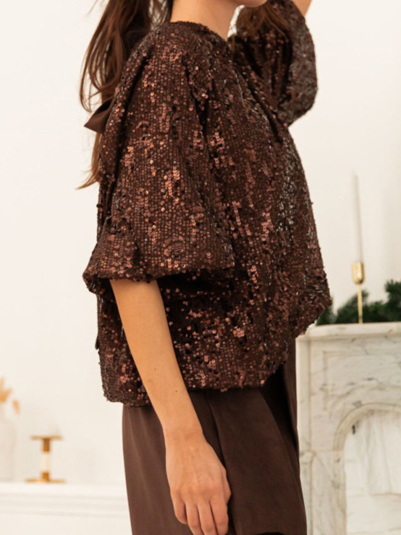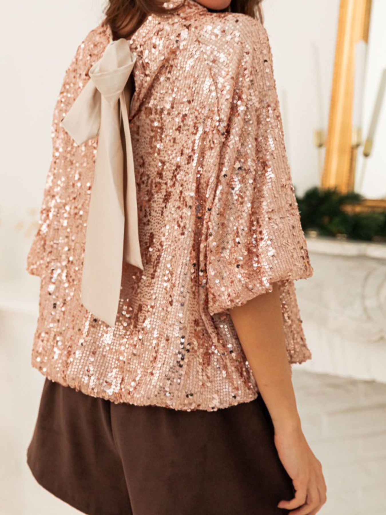 Sequin Embellished Tie-Back Blouse