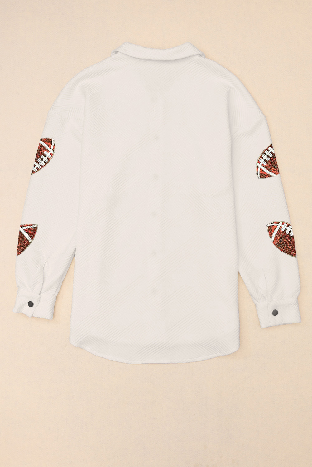 Sequin Football Patch Collared Neck Snap Button Jacket