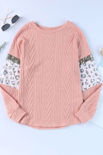 Sequin Leopard Round Neck Long Sleeve Sweater