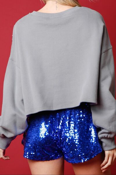 Sequin Round Neck Dropped Shoulder Sweatshirt