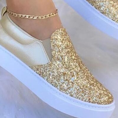 Sequin Round Toe Platform Slip-Ons