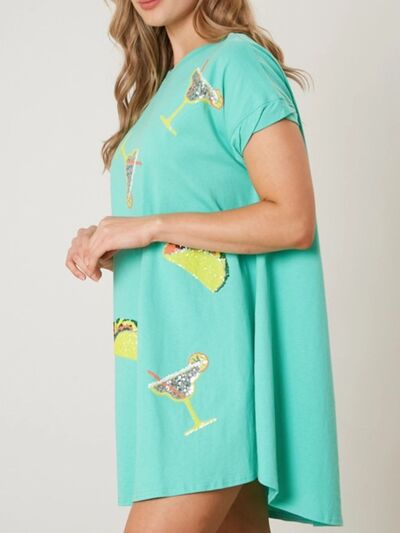 Sequin Short Sleeve Summer Tee Dress