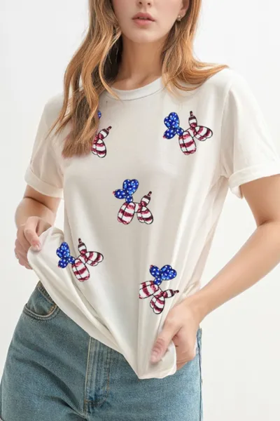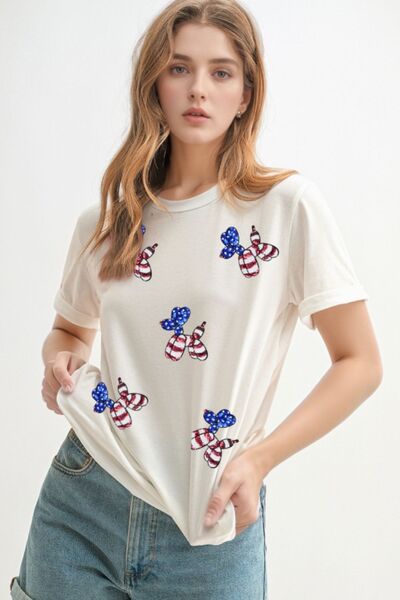 Sequin Stars and Stripes Balloon Puppy Graphic Crewneck Tee