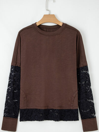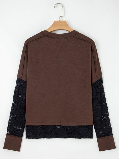 Sheer Lace Patchwork Casual Long Sleeve Top