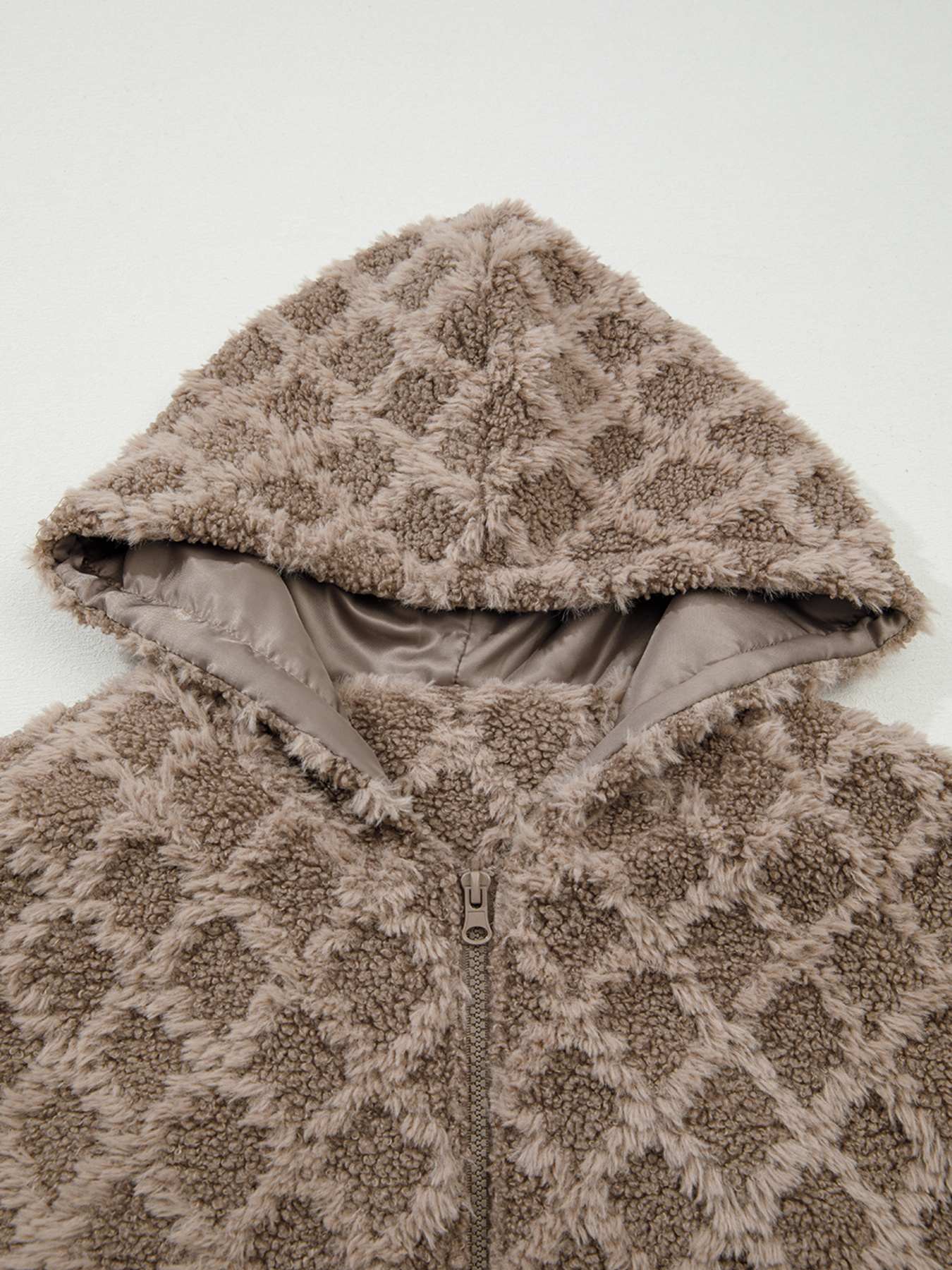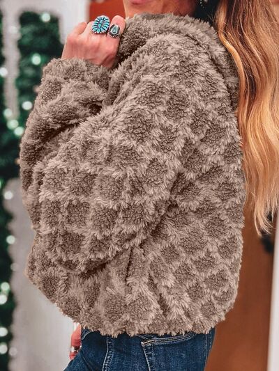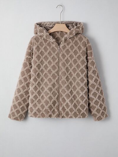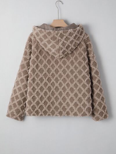 Sherpa Rhombus Zip Up Side Pocket Hooded Jacket