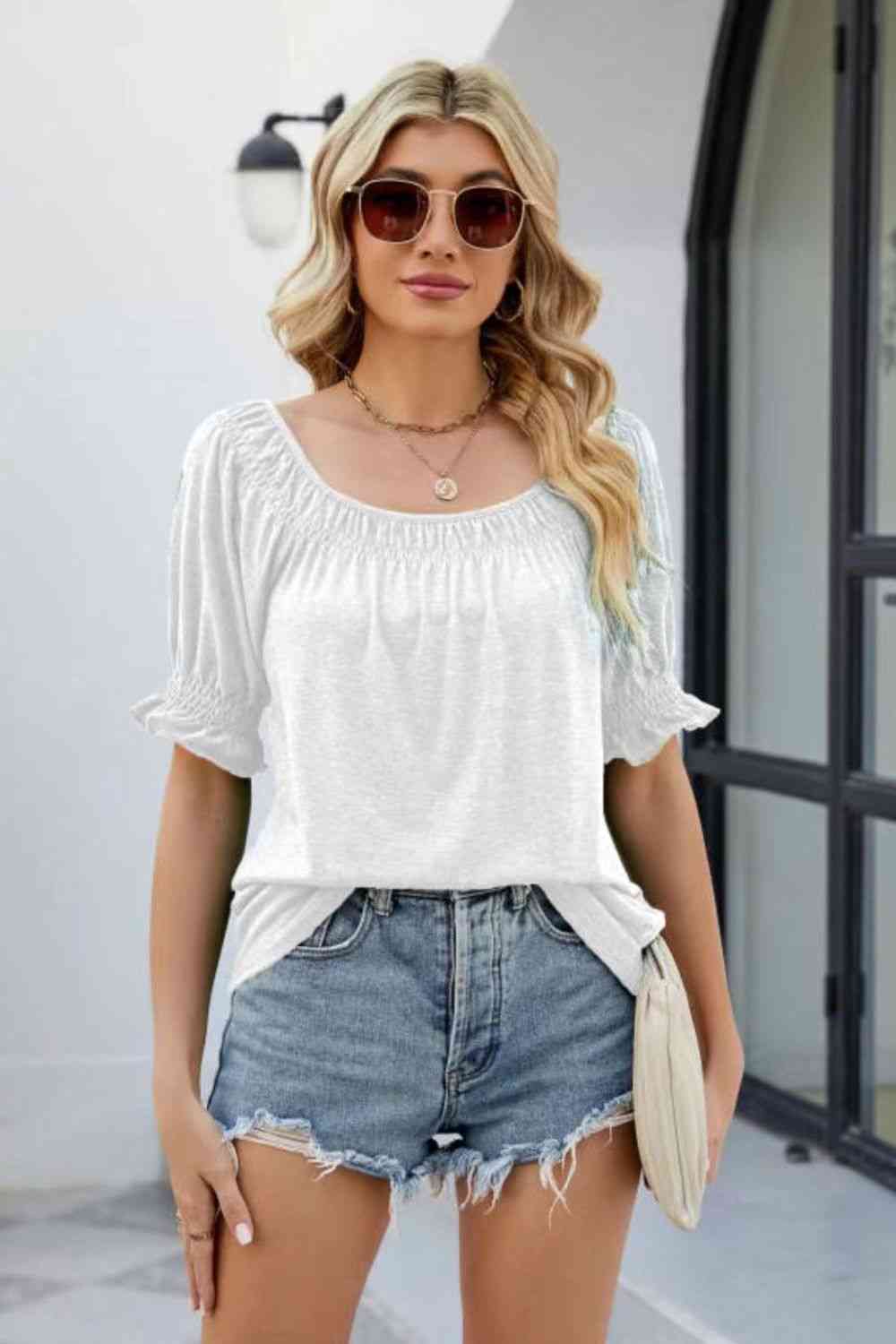 Short Flounce Sleeve Top