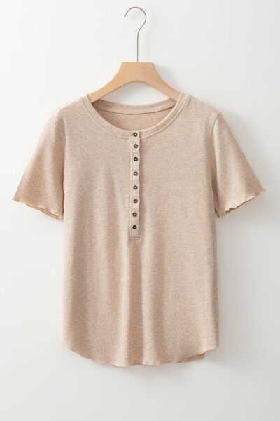 Short Sleeve Half Button Ribbed Knit Top