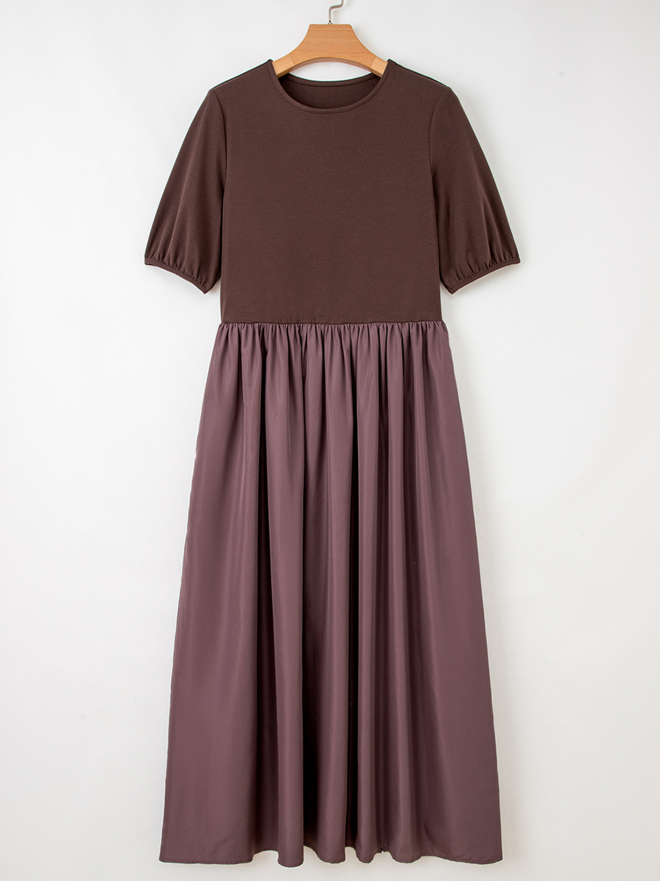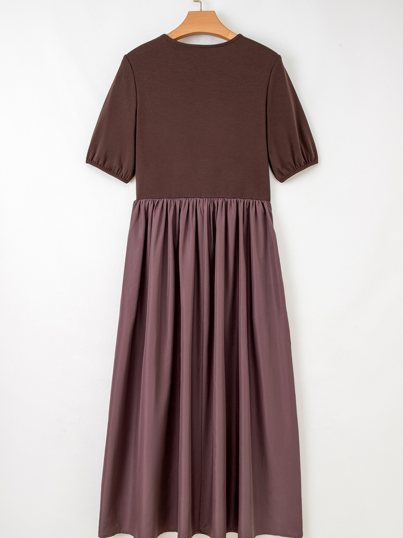 Short Sleeve Knit Top Patchwork Pleated Dress