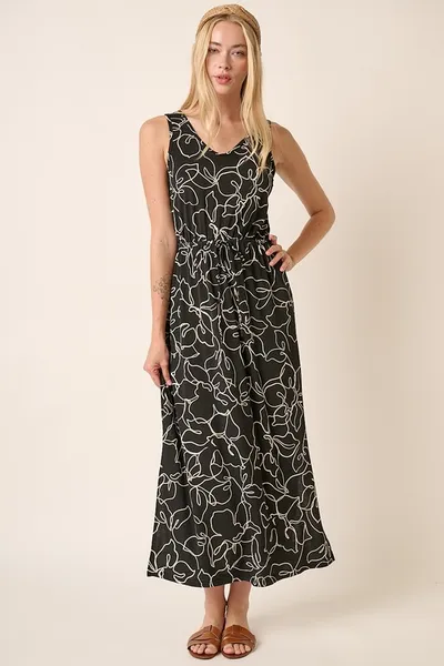 Side Slit Flower Print V-Neck Sleeveless Dress