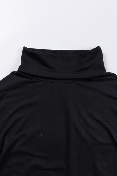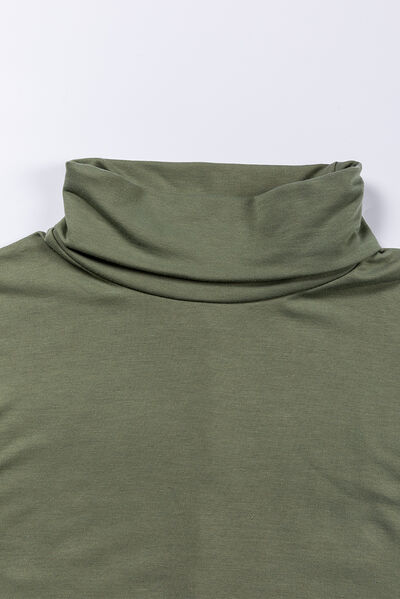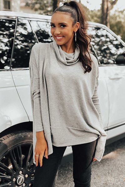 Side Slit High-Low Cowl Neck Long Sleeve Blouse