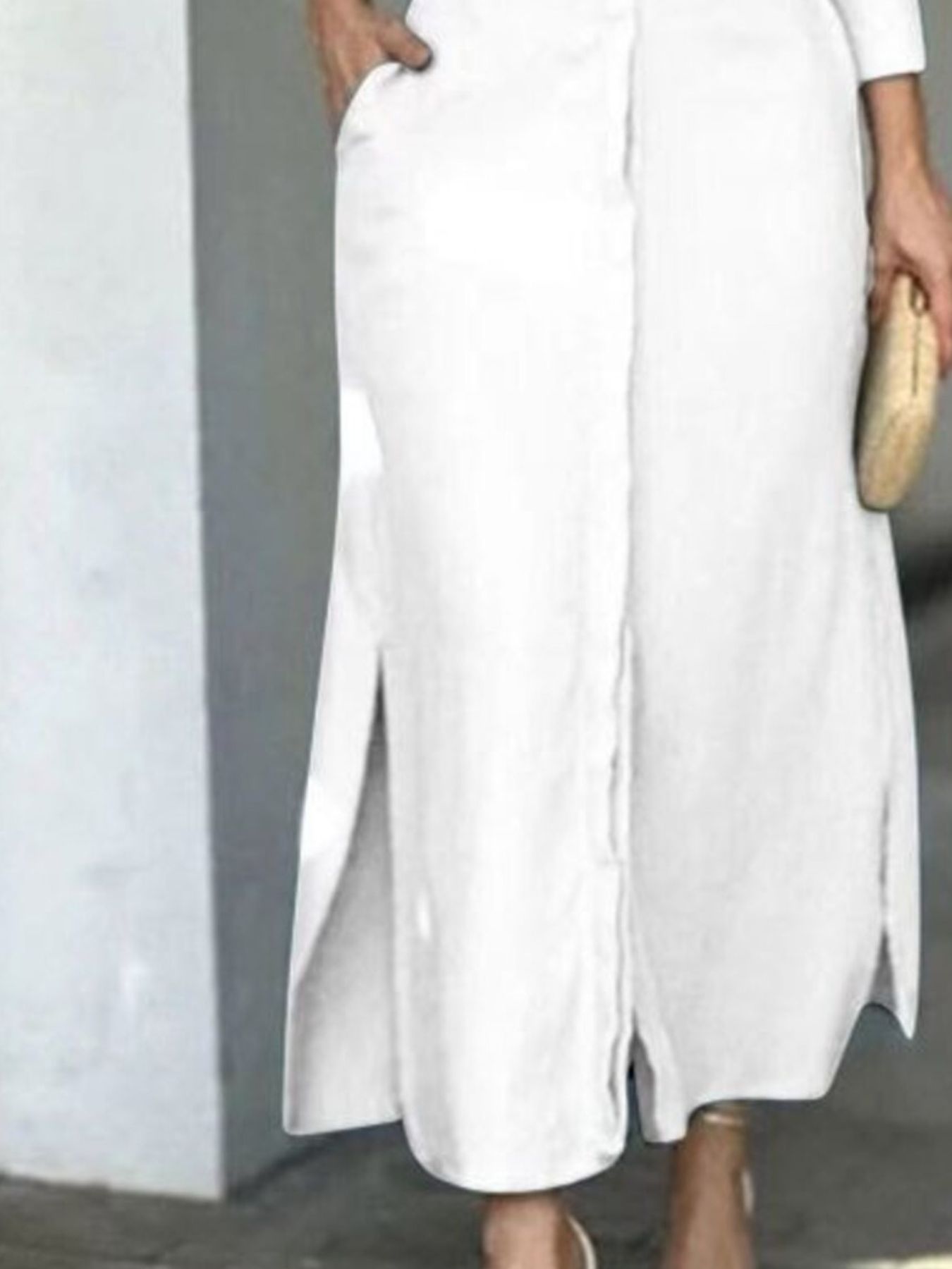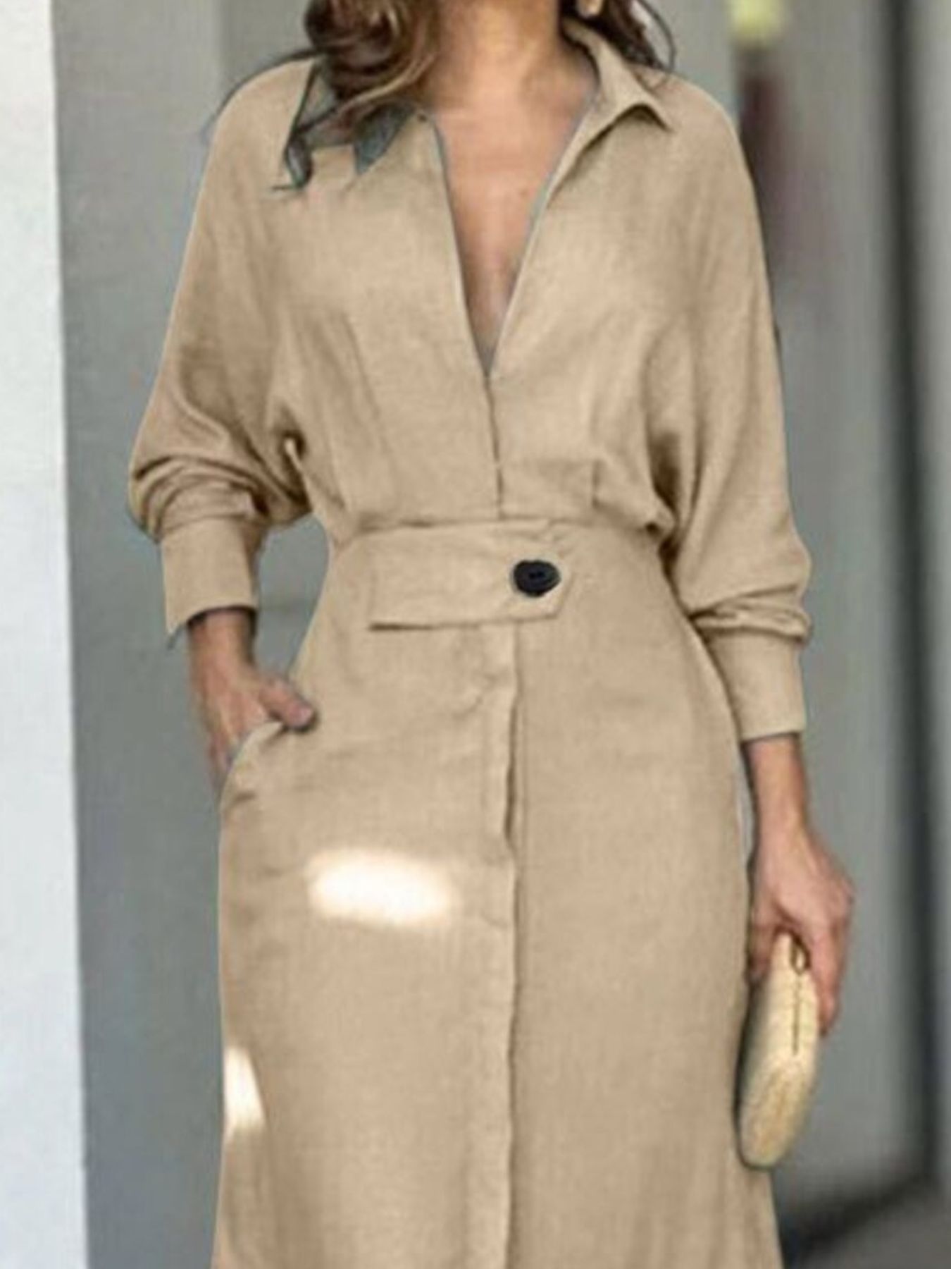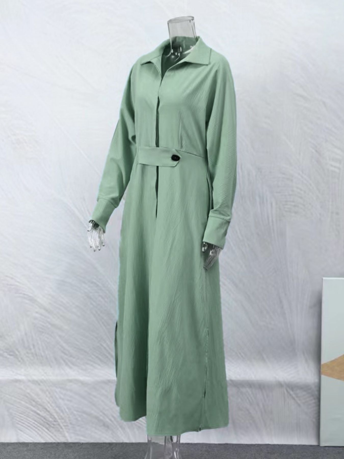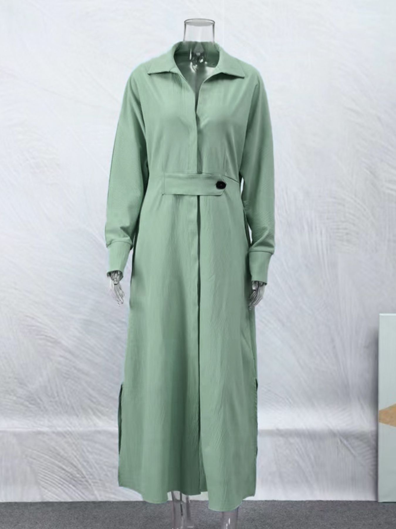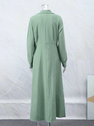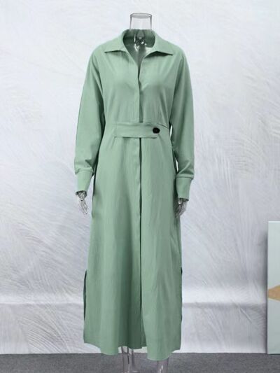 Side Slit Long Sleeve Shirt Dress