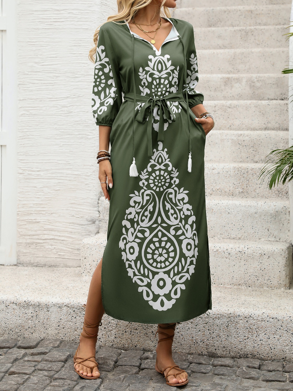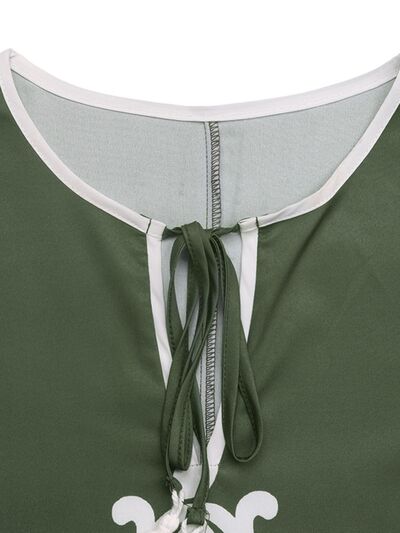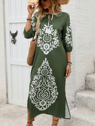 Side Slit Printed Tie Neck Dress