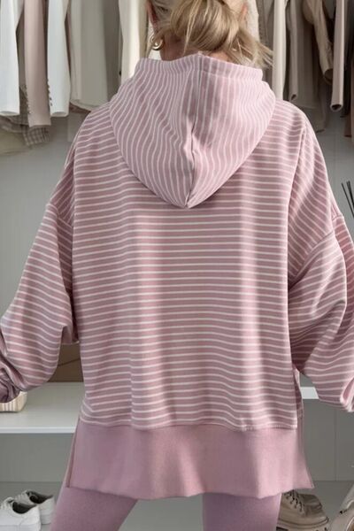 Side Slit Striped Oversized Hoodie