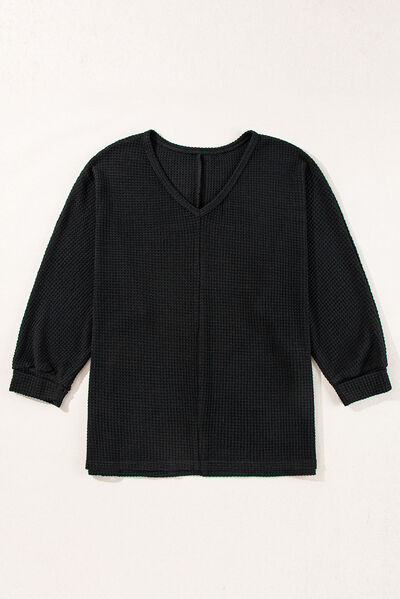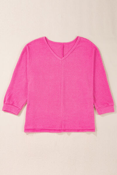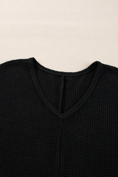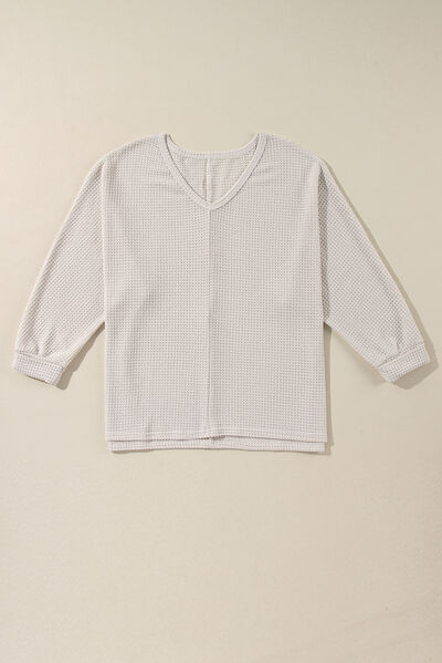 Side Slit V-Neck Long Sleeve Top