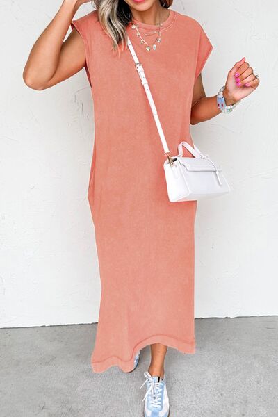 Side Split Round Neck Cap Sleeve T-Shirt Dress