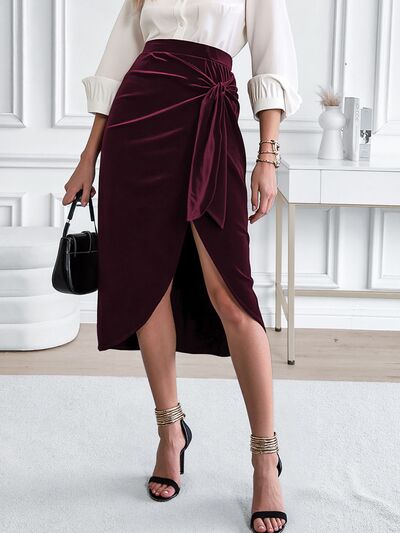 Side Tied Velvet Skirt
