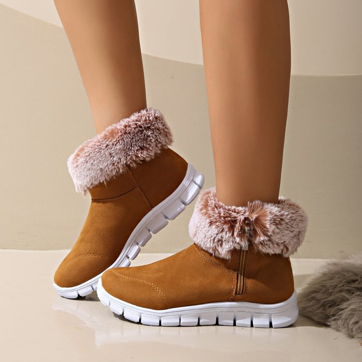 Side Zip Faux Fur Boots