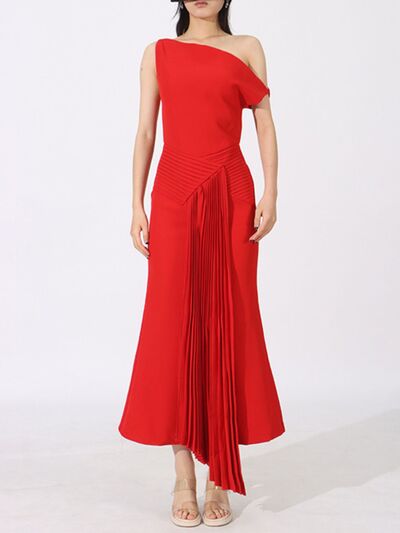 Single Shoulder Pleated Dress