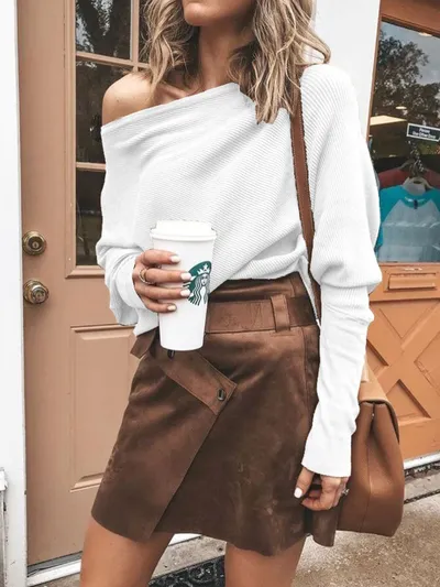 Single Shoulder Ribbed Knit Top