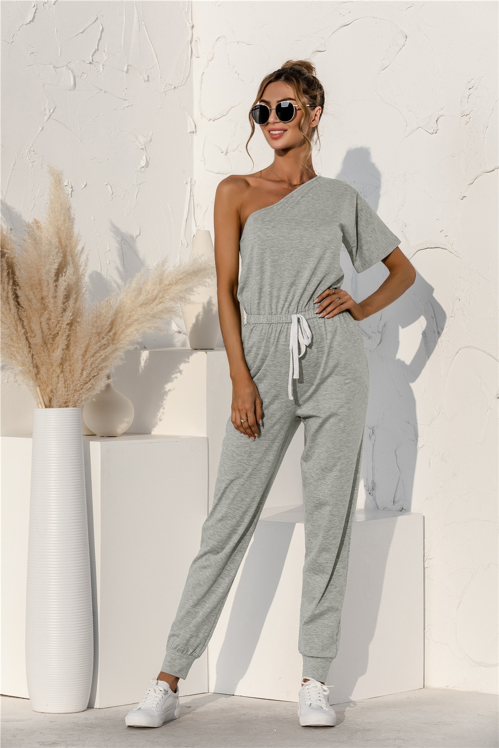 Single Shoulder Short Sleeve Jumpsuit