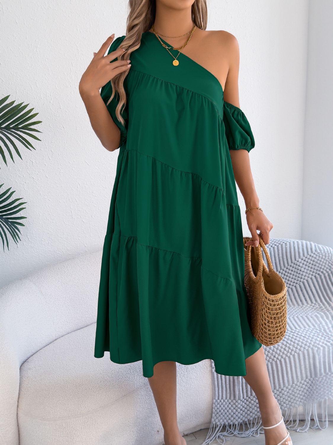 Single Shoulder Tiered Dress