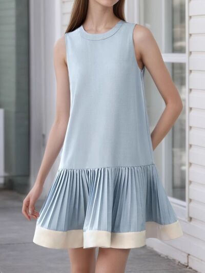 Sleeveless Pleated Hem Dress