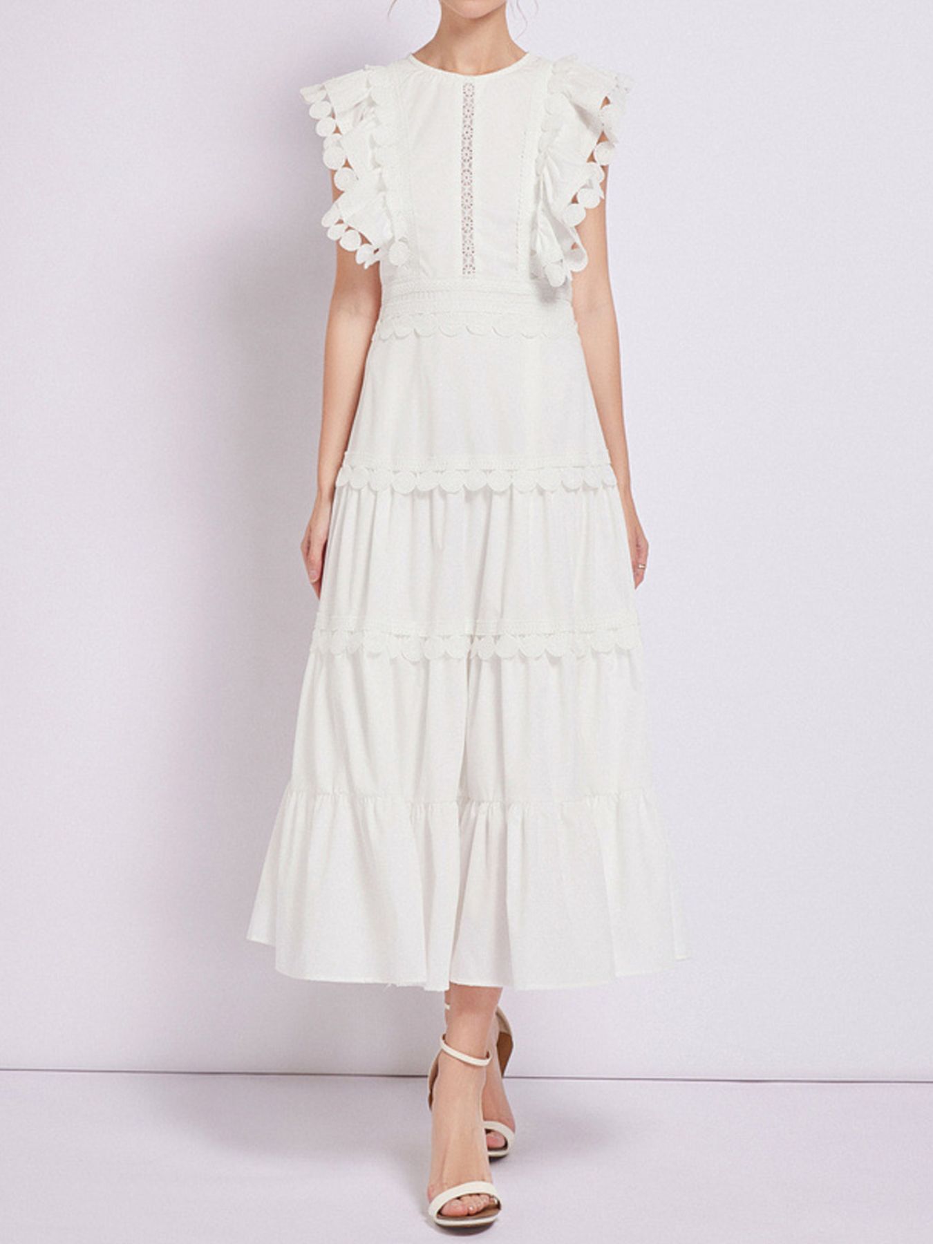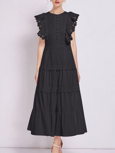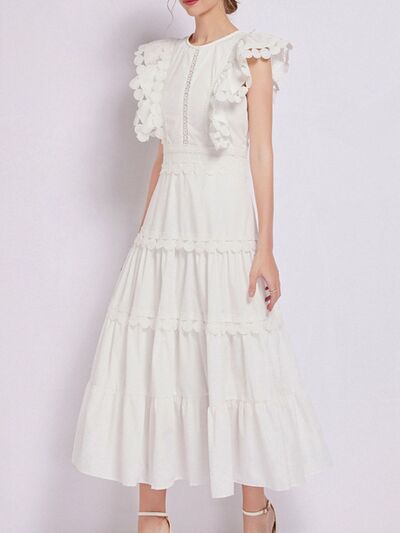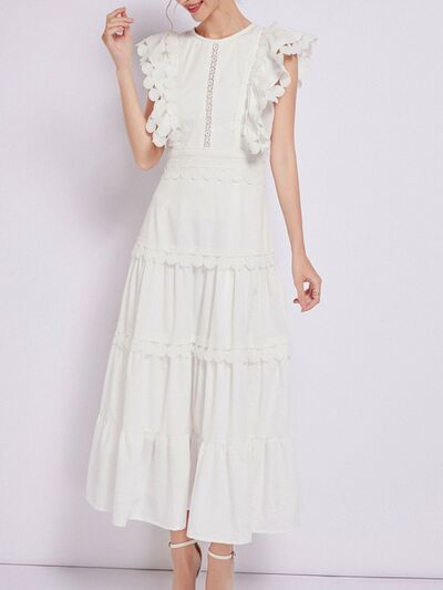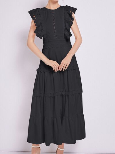 Sleeveless Ruffled Tiered Dress with Embroidered Trim