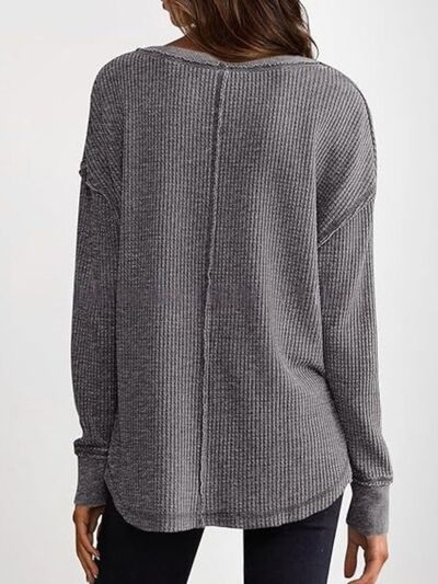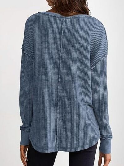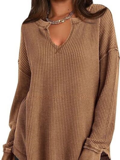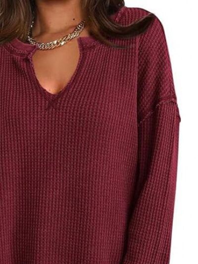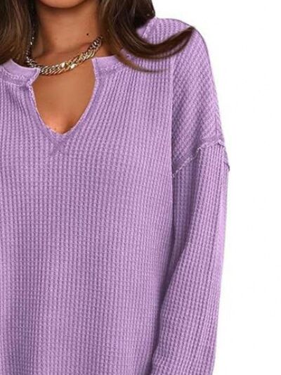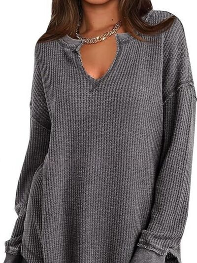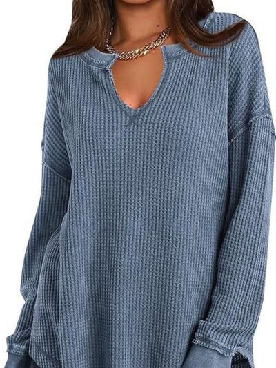 Slit Notched Long Sleeve T-Shirt