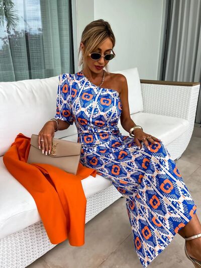 Slit Printed Single Shoulder Midi Dress