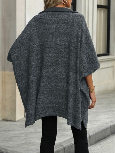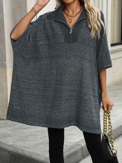 Slit Quarter Zip Half Sleeve Sweater