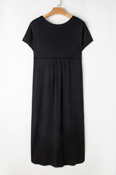 Slit Round Neck Short Sleeve Maxi Dress