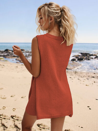 Slit Round Neck Top and Shorts Set