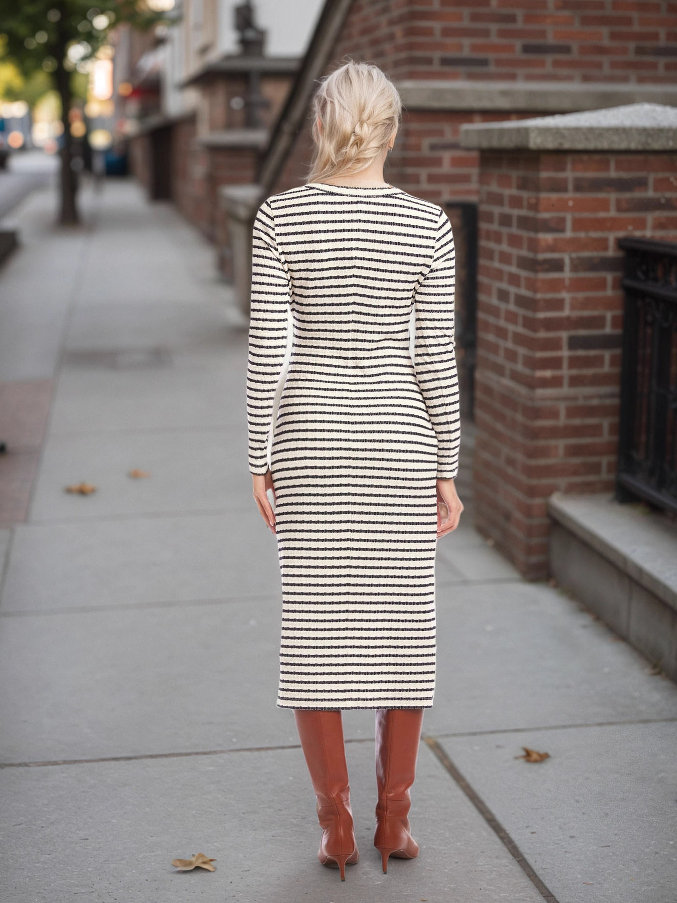 Slit Striped Long Sleeve Dress