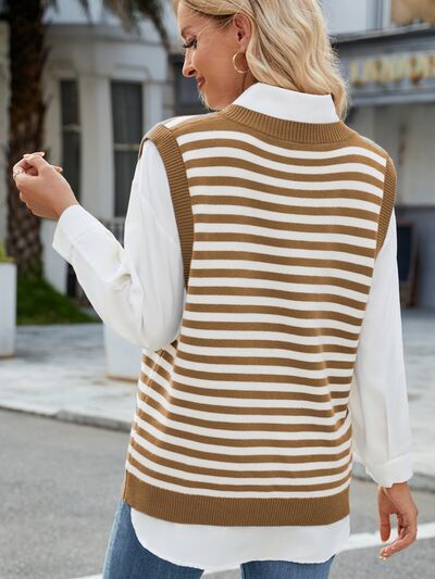 Slit V-Neck Striped Sweater Vest