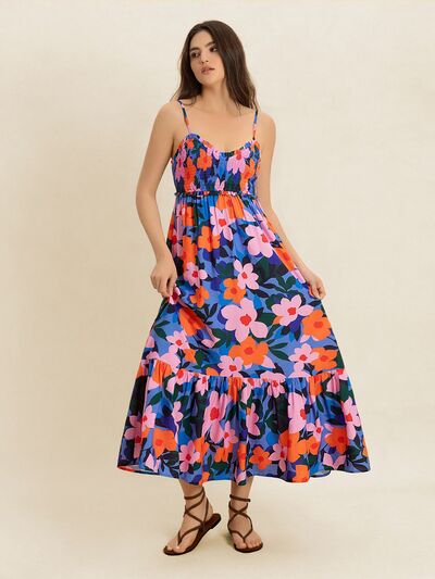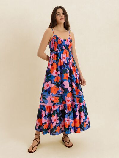 Smocked Back Ruffled Hem Printed Cami Dress