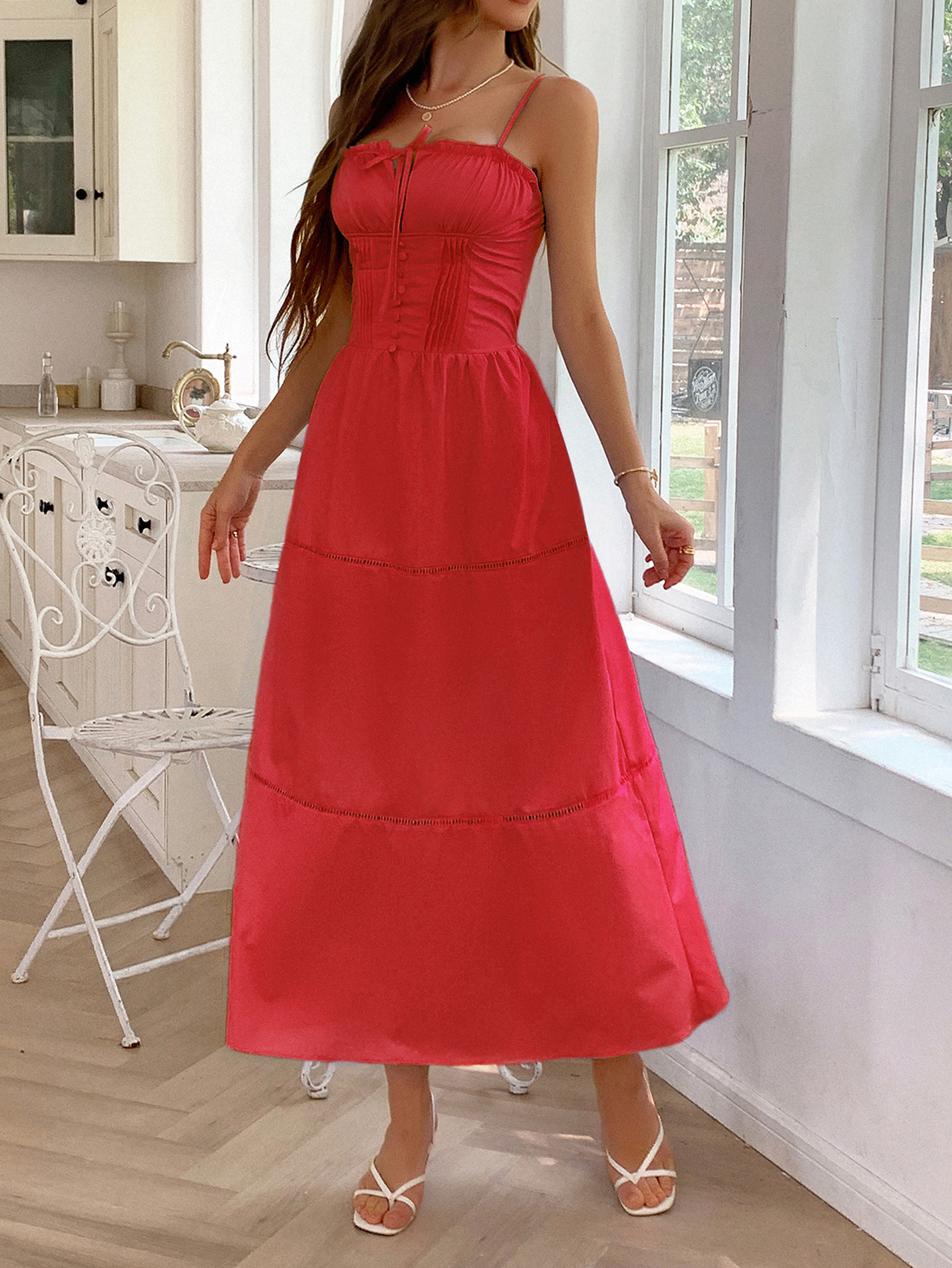 Features:Ruched,Tied,Frill,Smocked