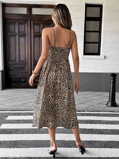 Smocked Leopard Midi Cami Dress
