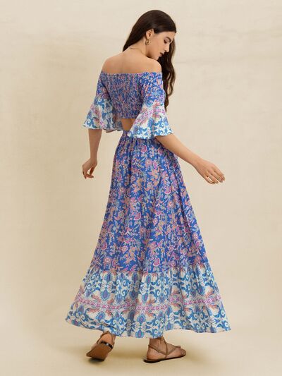 Smocked Off-Shoulder Printed Top and Skirt Set