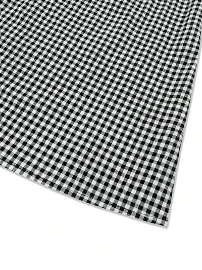 Smocked Plaid Round Neck Layered Short Sleeve Blouse