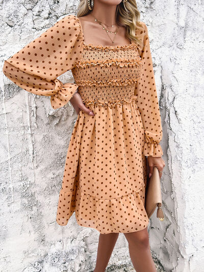 Smocked Polka Dot Long Sleeve Dress