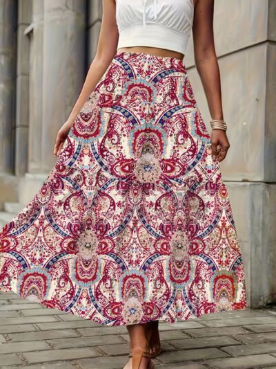 Smocked Printed High Waist Skirt