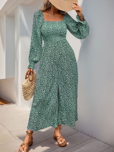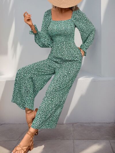 Smocked Printed Long Sleeve Wide Leg Jumpsuit
