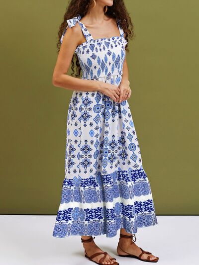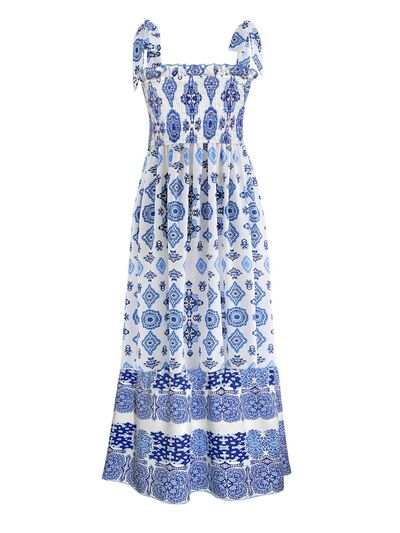 Smocked Printed Square Neck Cami Dress