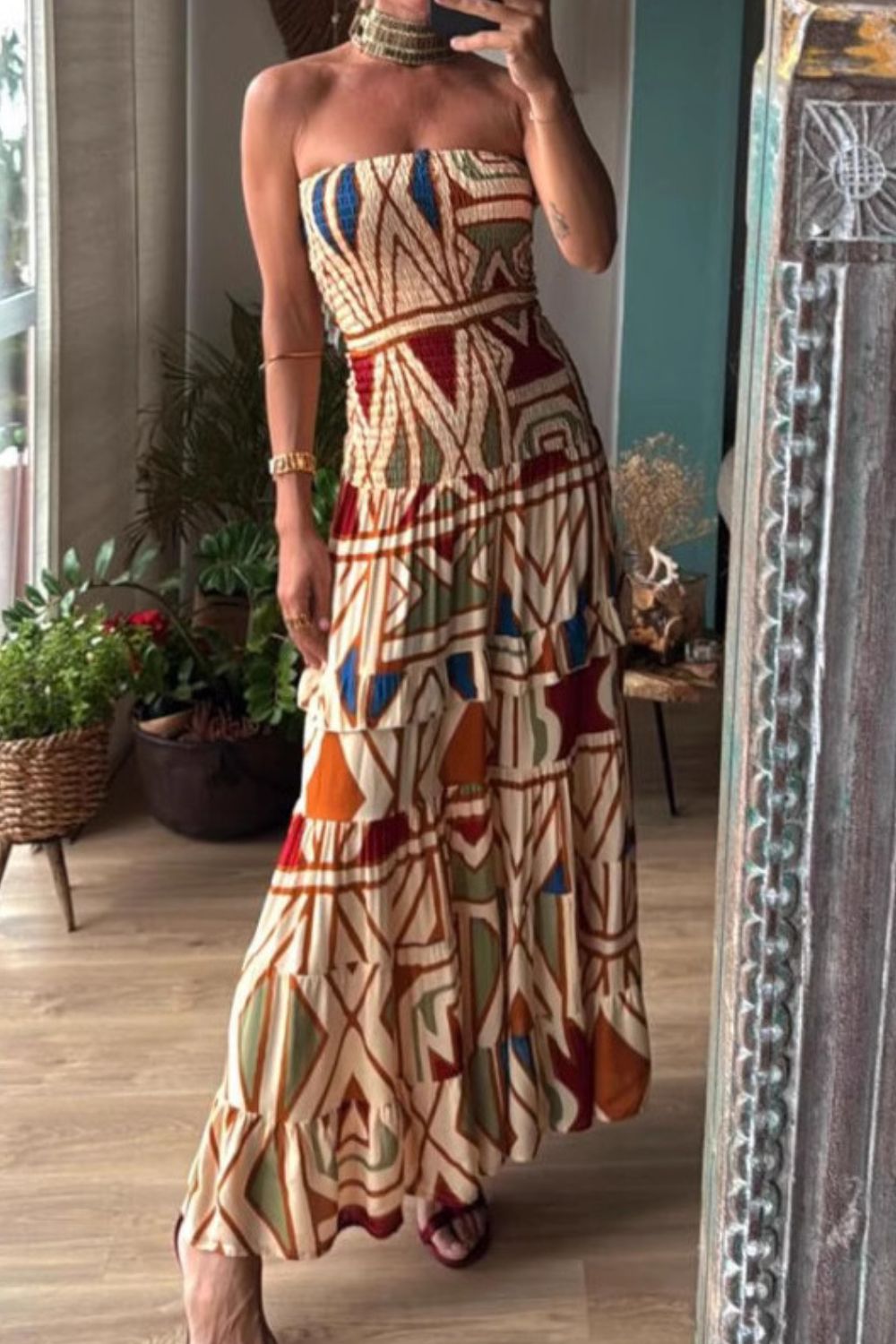 Smocked Printed Tube Dress