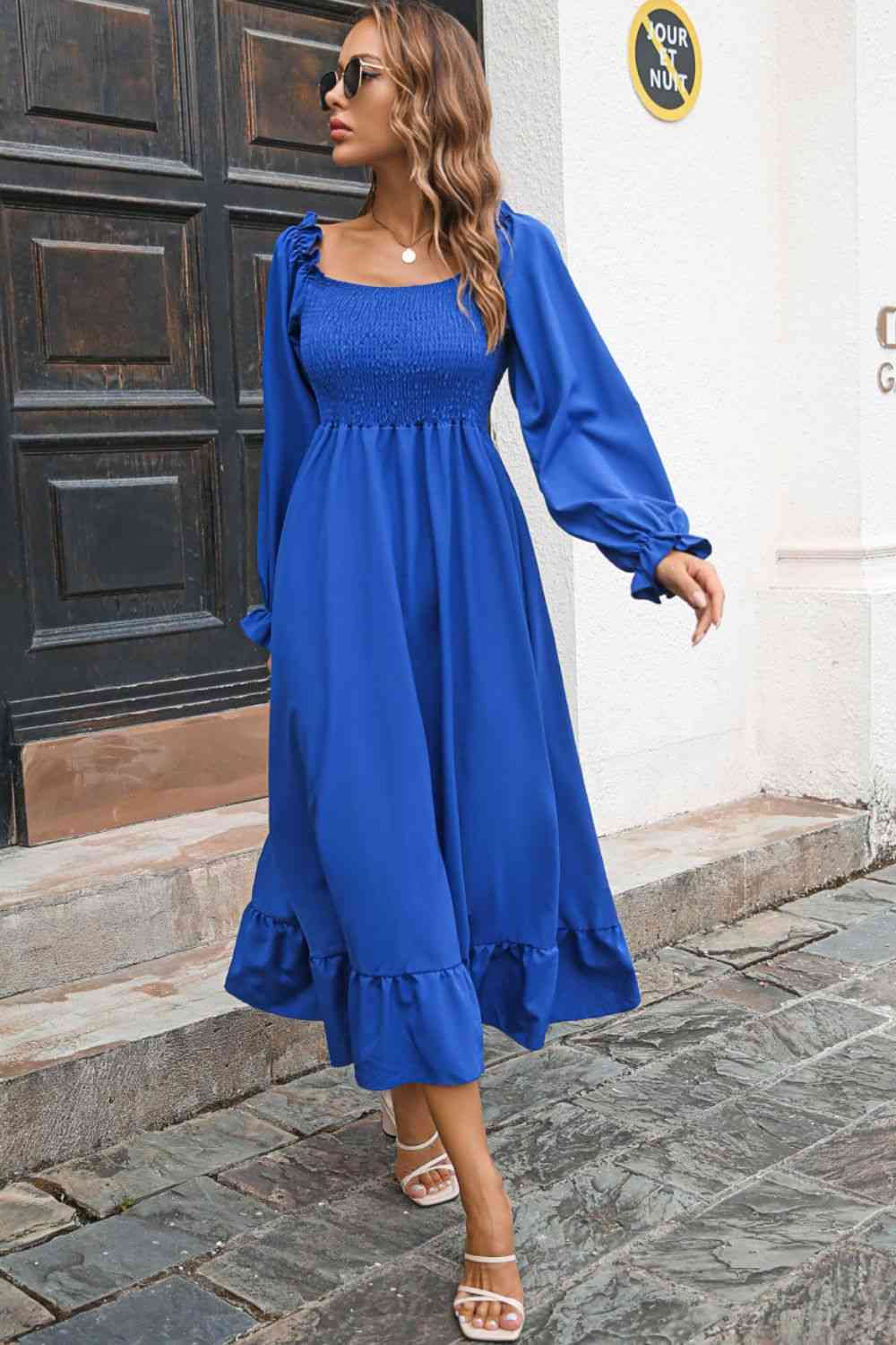 Smocked Ruffle Hem Flounce Sleeve Dress