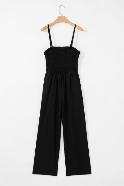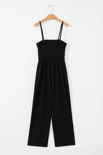 Smocked Spaghetti Straps Wide Leg Jumpsuit